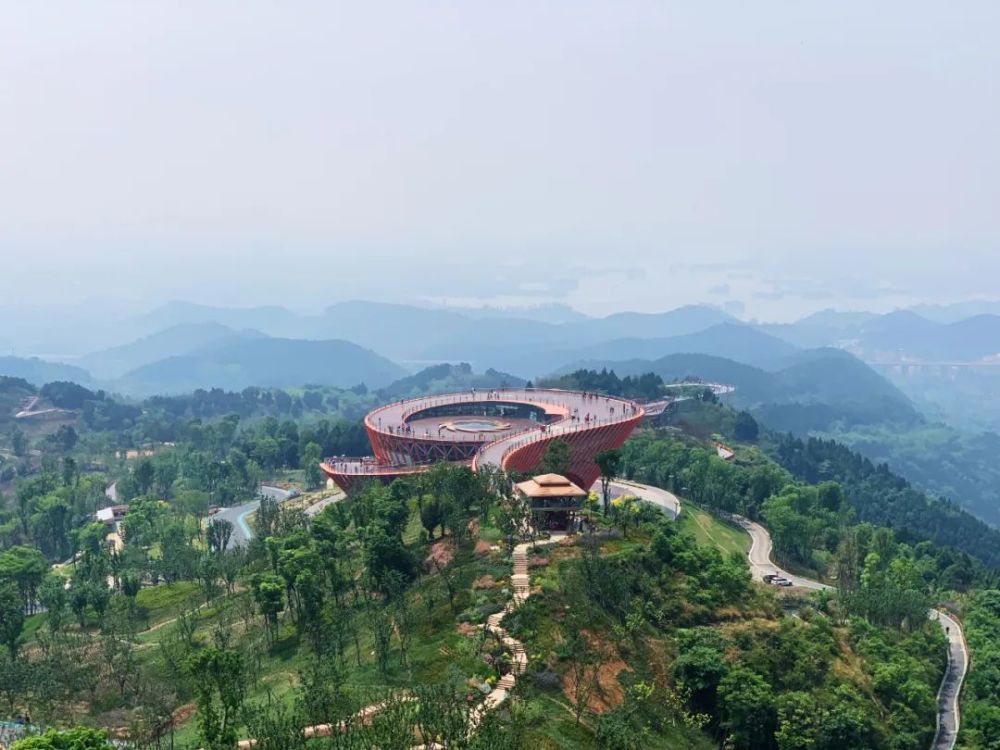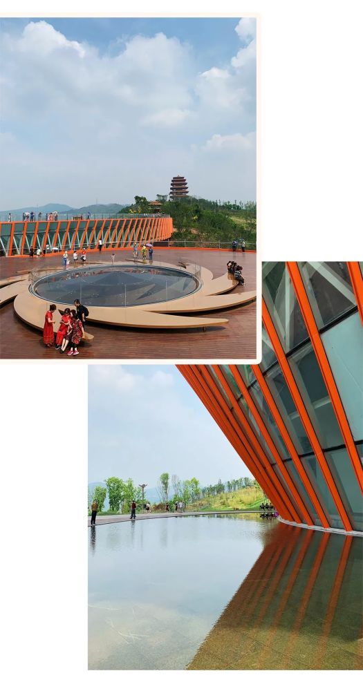 丹景台主体建筑呈现为螺旋向上的栈道和圆形曲线,从空中俯瞰,形似太阳神鸟一般。游客沿螺旋木道向上,可以在这里眺望成都东进主战场,感受真正的“城市之眼”!