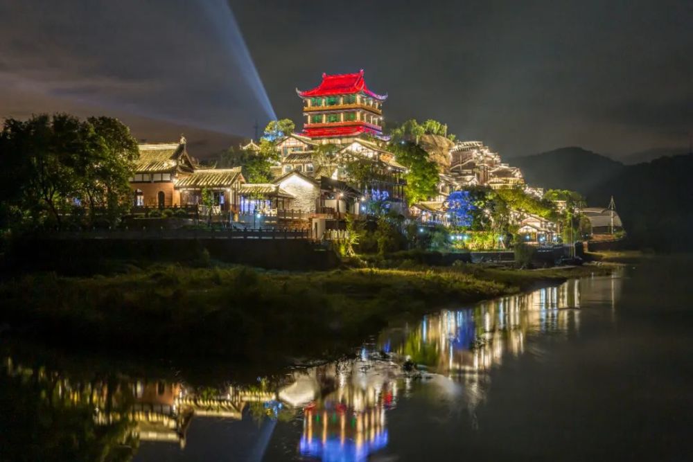 文艺的你,可以在露天音乐厅看一场别开生面的大型水舞光影秀《传说五凤溪》。看完秀,漫步江边,天空的繁星点点与五凤溪的灯火交相辉映,天上宫阙之美近在眼前。