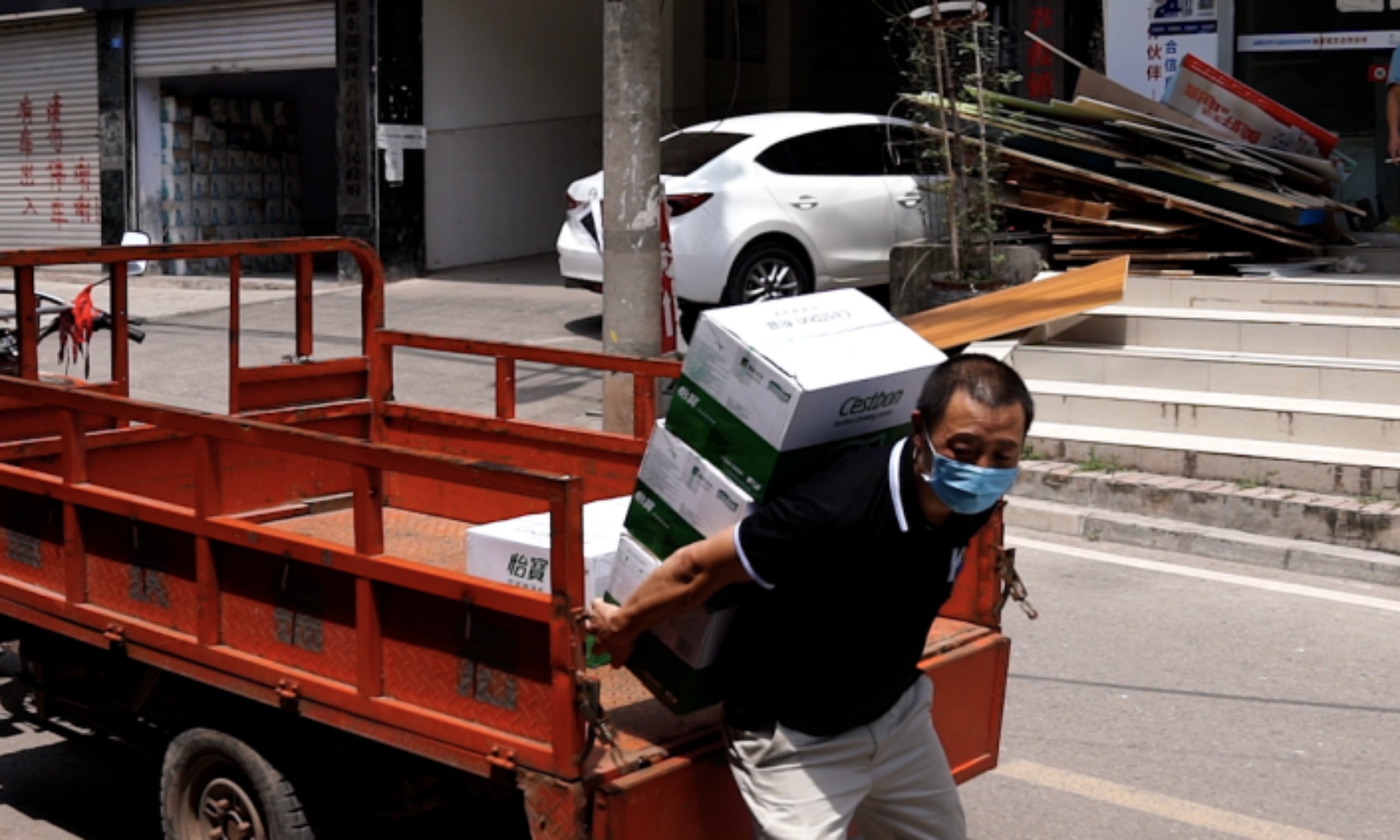 连夜辗转四个核酸点为医务人员送物资 超市老板马超:想为芦葭镇防疫贡献一点绵薄之力 7月28号晚,正准备关门回家休息的马老板,忽然收到村民微信群里的通知:“今晚立刻开始4个社区全员核酸检测”“各位村民请准备分批开始进行核算检测,晚上检测时间不间断,力争今晚完成4个小区全员检测”。 彼时,虽已是深夜,但是当时温度仍然高达三十几度,马老板想到了即将熬夜通宵做核酸检测的医护人员。“我们穿着背心都热的直冒汗,他们穿着那么厚的防护服,怎么遭得住?” 马超把一箱箱矿泉水、牛奶、方便面往三轮车上装